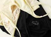 水着素材と美しいシルエットが、速乾性、デザイン性双方から、
